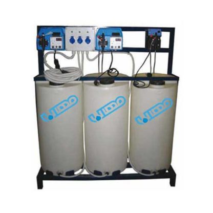 در این سیستم مخازنی از جنس پلی اتیلن به همراه الکتروموتور اروپایی و شافت و پروانه ضد زنگ جهت اختلاط کلر و آماده سازی سیستم کلرزنی در نظر گرفته شده است. در بعضی از مدلها می توان از سیستمهای تزریق و مجهز به سنسور اندازه گیری online کلر آزاد (کلر باقی مانده در آب) استفاده نمود. در صورت در خواست می توان سیستم را به رله آلارم و رله شیر سلونوئیدی به منظور تنظیم میزان تزریق کلر مجهز نمود.